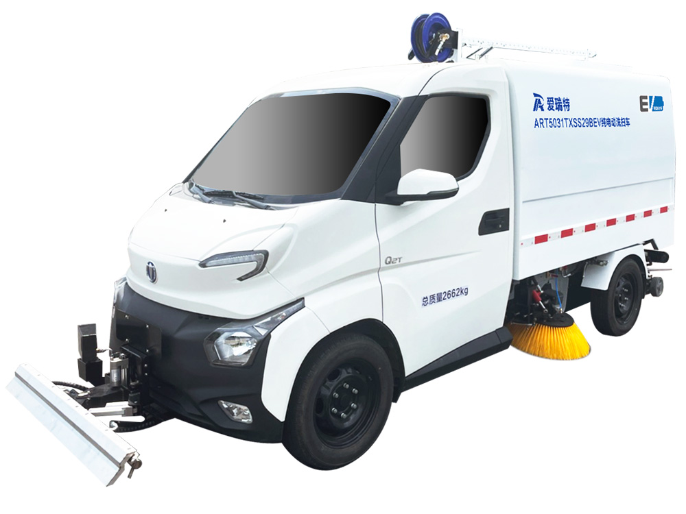 ART5031TXSS29BEV純電動(dòng)洗掃車主要用于主干道、非機(jī)動(dòng)車道、背街小巷等路面的普掃作業(yè),集清掃、高壓沖洗等功能為一體,可快速清掃落葉、石子、沙塵、白色垃圾等,垃圾,自卸傾倒。