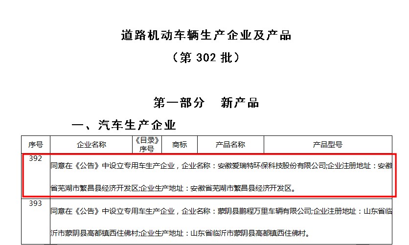 2017年獲國(guó)家工信部頒發(fā)“專用車生產(chǎn)資質(zhì)”愛(ài)瑞特產(chǎn)業(yè)園建成投產(chǎn);形成年產(chǎn)新能源環(huán)衛(wèi)車3萬(wàn)臺(tái)、產(chǎn)能達(dá)20億規(guī)模專用汽車生產(chǎn)企業(yè);2018年公司正式更名為“安徽愛(ài)瑞特新能源專用汽車股份有限公司”